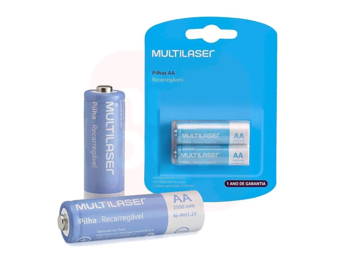 2. Pilhas Recarregáveis AA Multilaser 2500Mah Com 2 Unidades - CB053